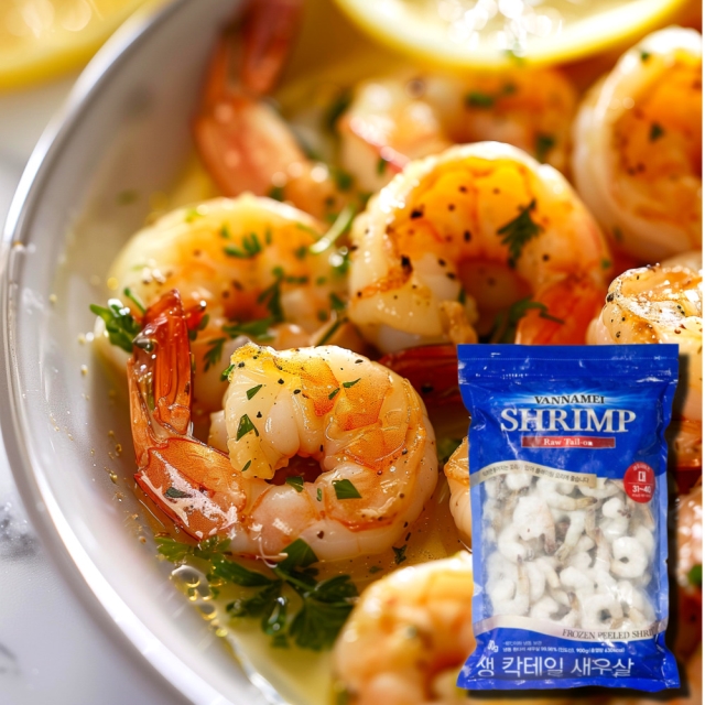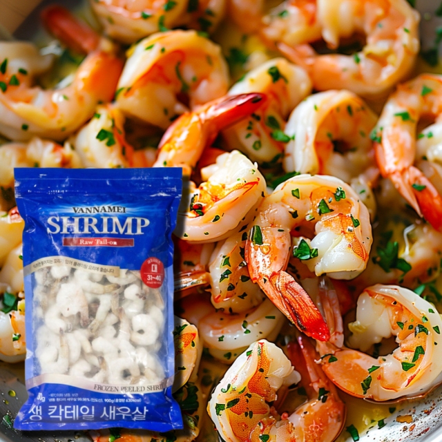 큼직하고 탱글한 대사이즈 새우살. 익혀 먹는 칵테일용으로 샐러드·파스타·볶음요리에 두루 활용됩니다.