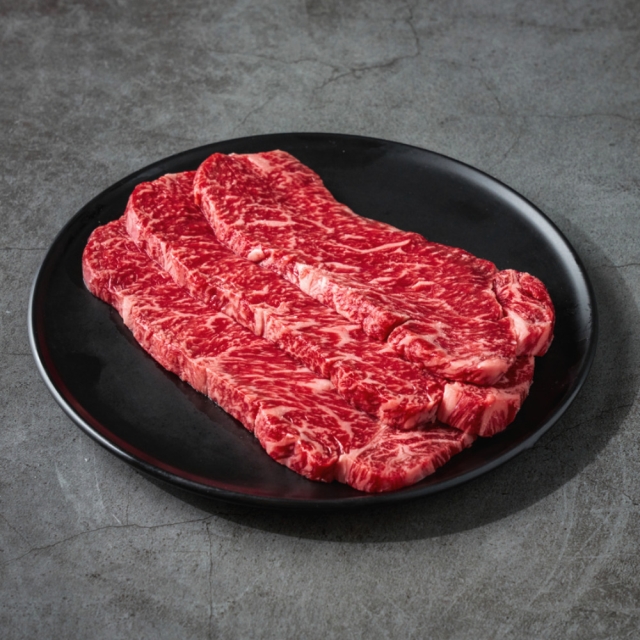 국내산 한우 1+ 등급, 고소한 풍미와 육즙이 조화로운 채끝살